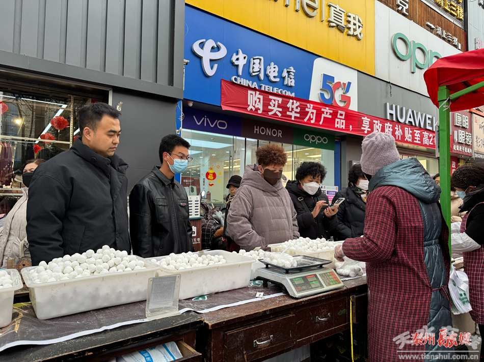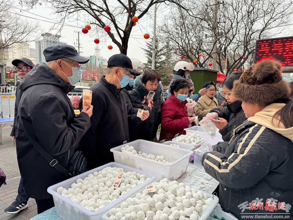 记者在秦州区一家糕点房看到,前来购买元宵的市民络绎不绝,商户忙得不亦乐乎。传统的制法、地道的口味,深受市民喜爱,一颗颗饱满亮白的元宵一摆上来,就销售一空。