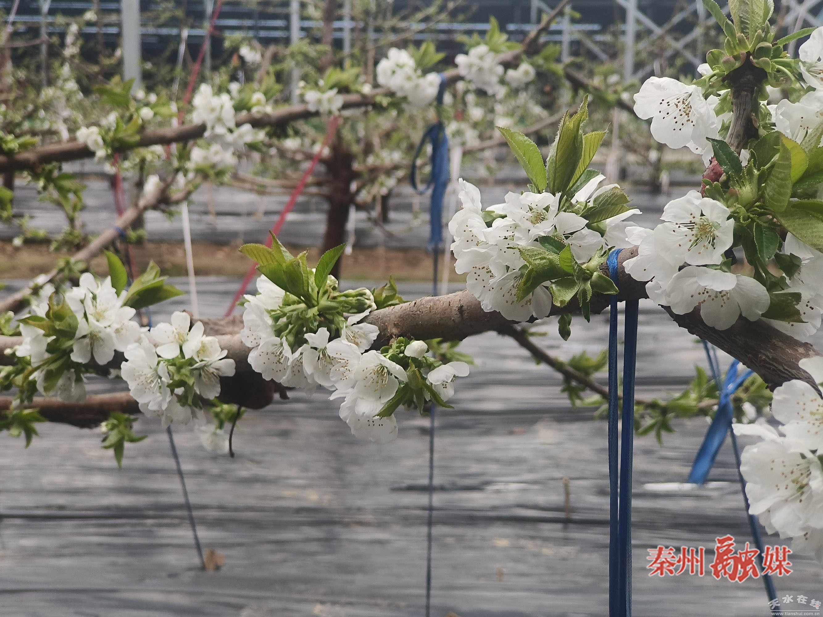走进杨湾村樱桃大棚里,一簇簇洁白的樱桃花挂满枝头,花香四溢,沁人心脾。在一片花海中,果农穿梭于花丛中间,忙着疏花、授粉,一派“人勤春来早”的喜人景象。佳盛达种养殖农民专业合作社负责人赵学军告诉记者,合作社自2022年开始种植设施大樱桃,目前三座设施大棚内共栽种美早大樱桃树2400余棵,今年是开花挂果的第一个年头。