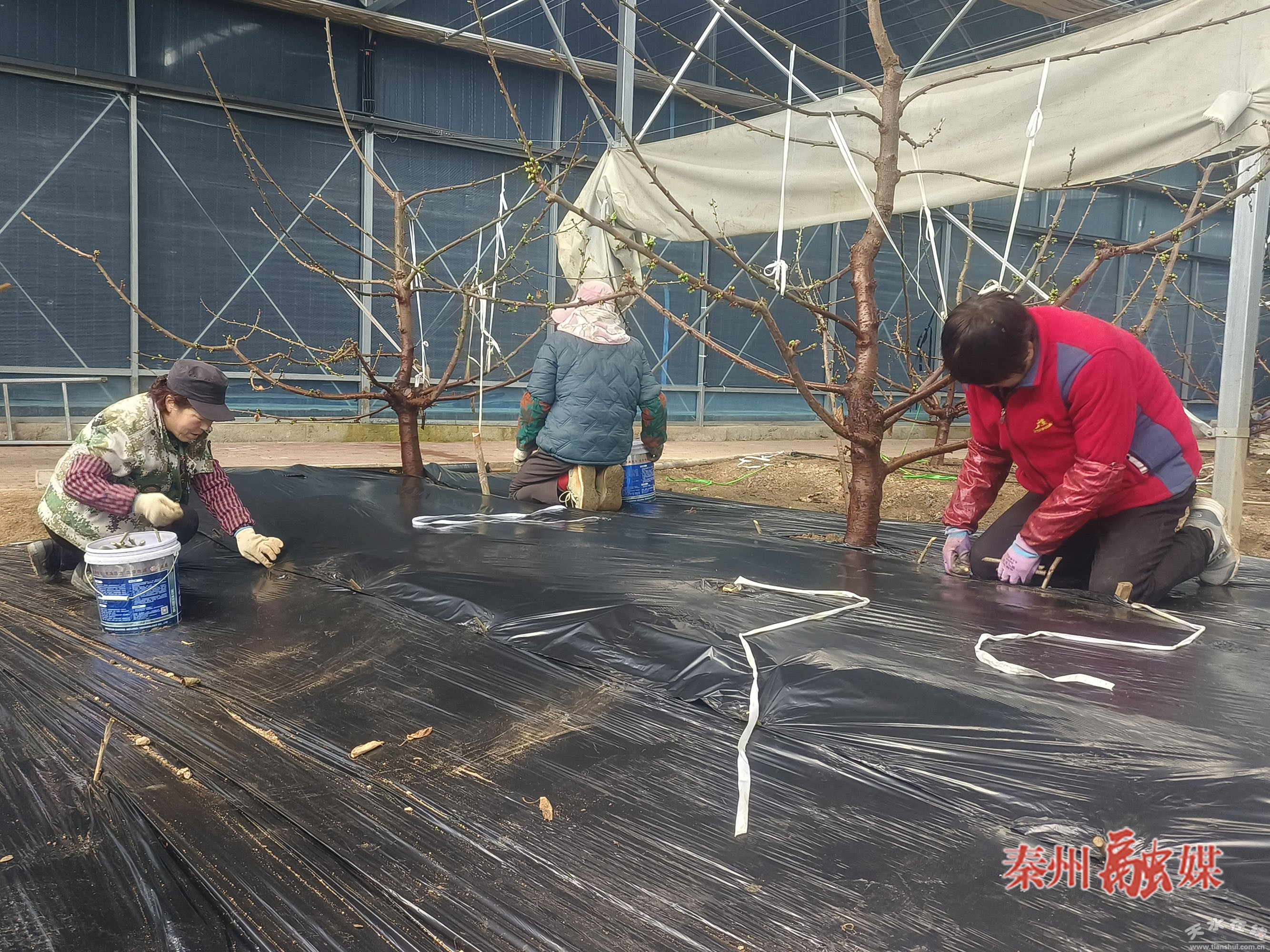 此外,在佳盛达种养殖合作社另外两座大棚里,樱桃树也已经长出嫩叶,小小的叶芽簇拥着含苞待放的花蕾,十几名村民和技术人员分工有序地进行覆膜、拉枝、病虫害防治等管护工作。预计再过十天左右,这些大棚内将是满树载繁花,棚棚盛春光的喜人景象。