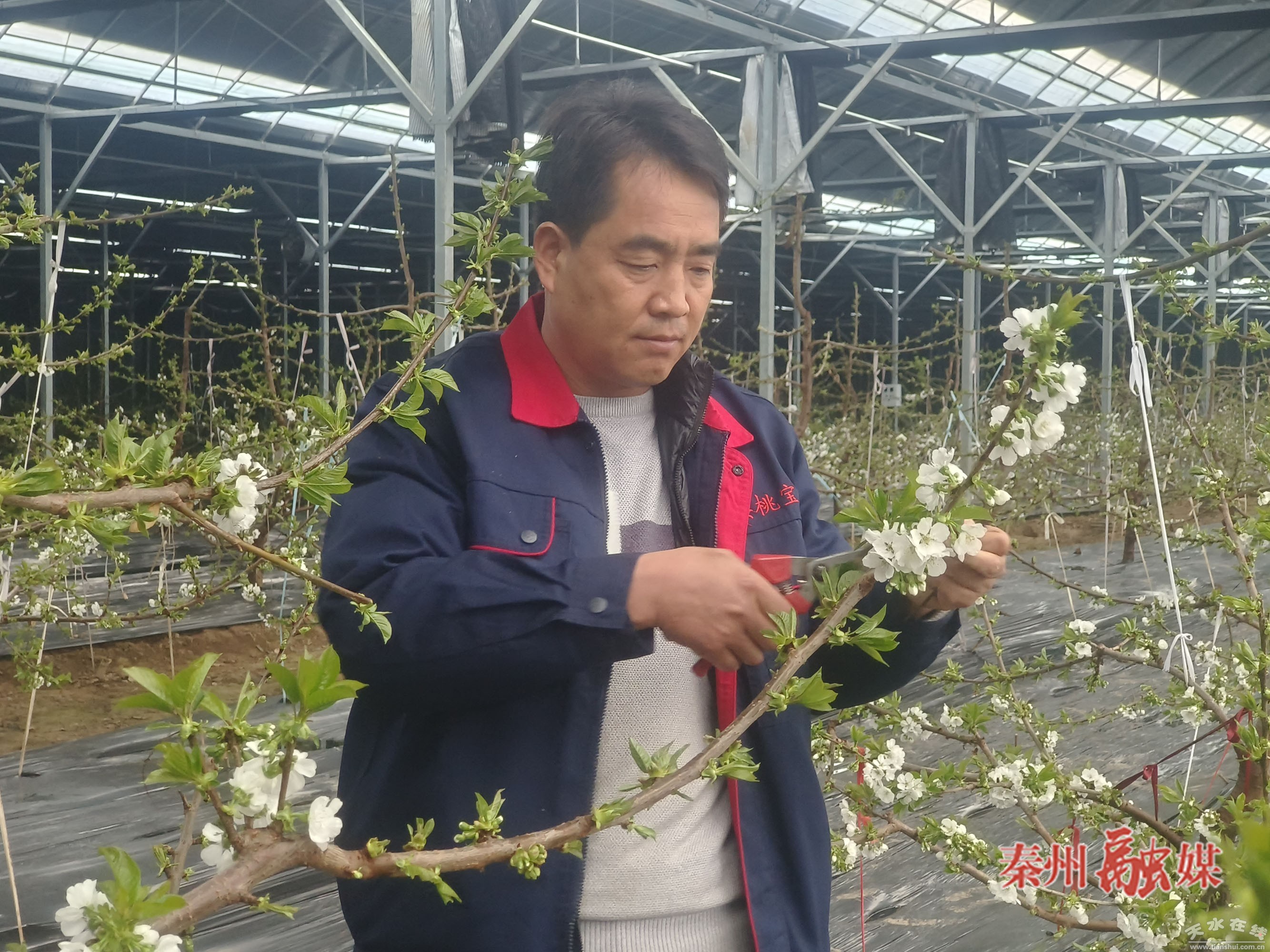 “2号棚的花开了,活也干完了,我们就挪到3号棚,还是覆膜、拉枝条,这里的花还有十天左右就开了,樱桃树长得好,这边的温度比正在开花的棚低一点。”秦州区佳盛达种养殖农民专业合作社技术人员武梅霞说。