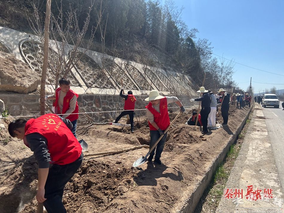 秦州区融媒体中心3月28日讯(记者 王歧)春分吹新绿,植树正当时。连日来,华岐镇党员干部抢抓植树黄金时期,掀起国土绿化热潮,以“党建红”引领“生态绿”,为和美乡村建设添新绿。