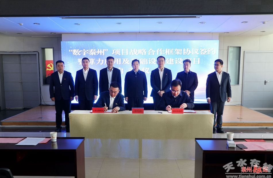 启动仪式上,中国移动天水分公司、上海九物科技有限公司负责人分别介绍了天水移动及“龙创智谷”信创产业园和大数据算力中心项目基本概况,区委常委、副区长裴育栋代表区人民政府与企业负责人分别签订《“数字秦州”战略合作框架协议》和《算力应用及基础设施建设项目投资合同书》。