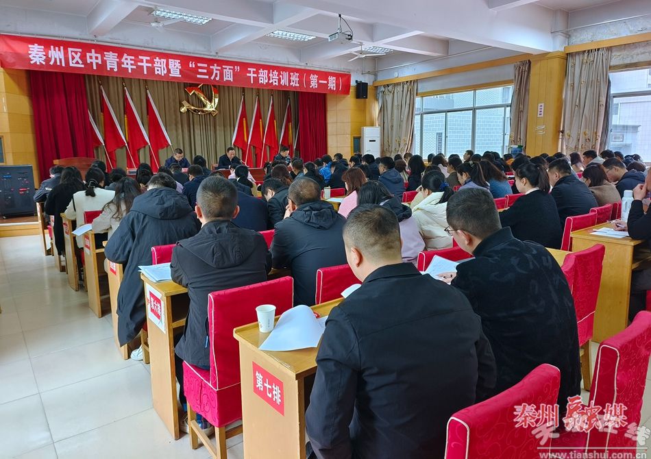 秦州区融媒体中心4月1日讯(记者 康睿)4月1日,秦州区中青年干部暨“三方面”干部培训班开班,区委副书记冯荣出席开班仪式并讲话。全区部分优秀中青年干部、后备干部、“三方面”干部、引进人才共98人参加培训。