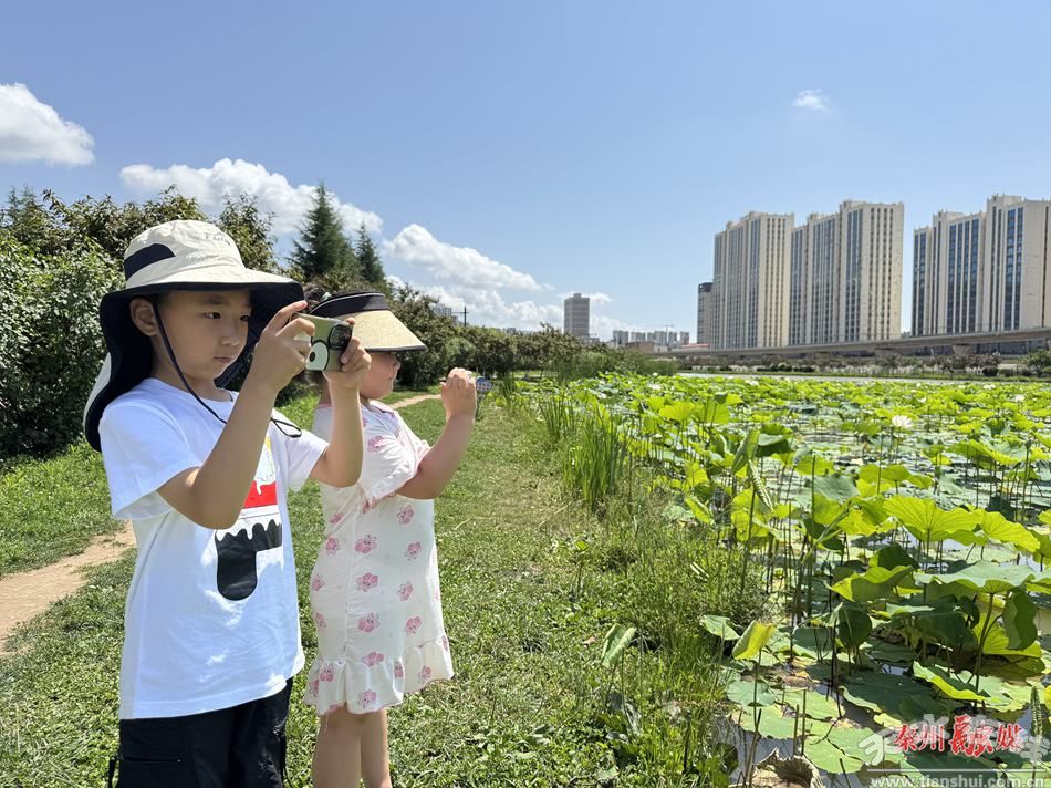 “今天我和姑姑还有哥哥,来看荷花,荷花特别好看,有粉色的,还有白色的,我还拿了我的相机,给荷花拍照。”小朋友刘羽诺说。