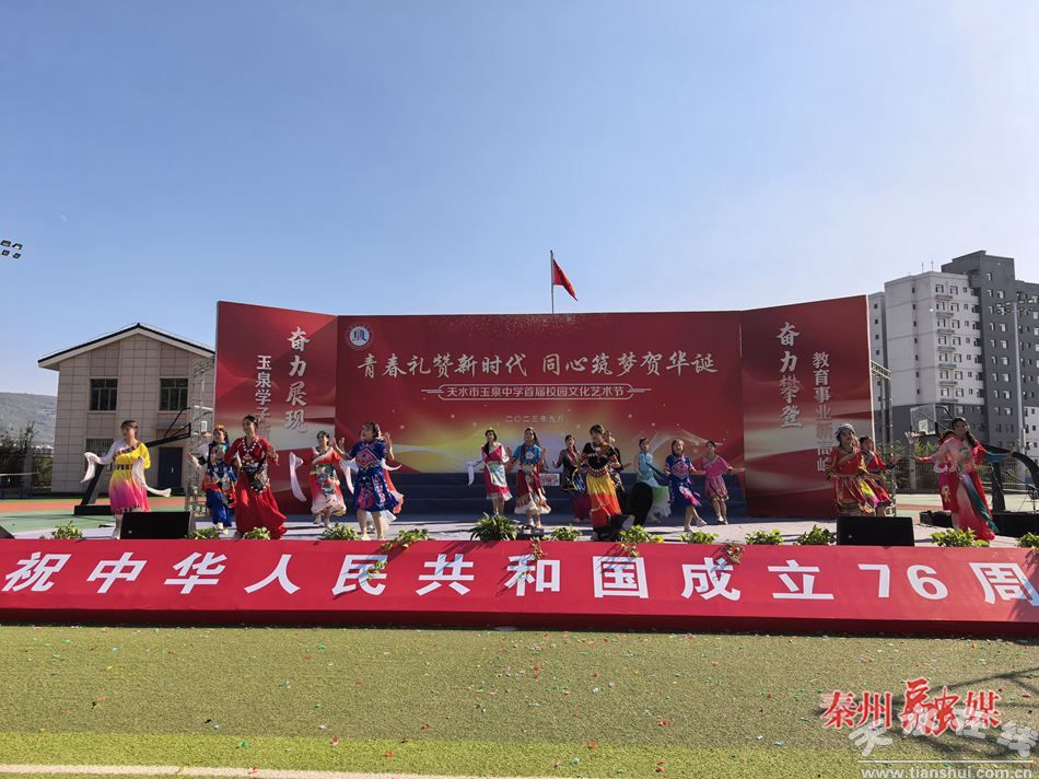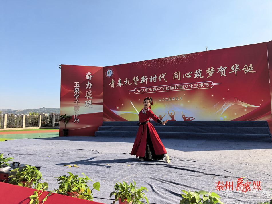 秦州区融媒体中心9月30日讯(记者 张敏)金秋送爽,丹桂飘香。为传承中华优秀传统文化、厚植师生家国情怀,9月 29日,天水市玉泉中学举办庆祝新中国成立76周年文艺汇演暨首届校园文化艺术节。全校师生欢聚一堂,以歌舞、器乐、武术、走秀等多元艺术形式,礼赞伟大祖国的辉煌成就,展现玉泉学子昂扬向上的精神风貌。