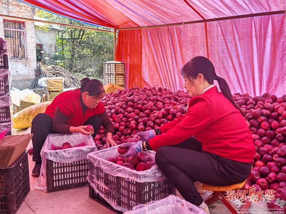 同样,秦州区华岐镇2.4万亩苹果也迎来大丰收,吸引了全国各地的客商前来收购,田间地头呈现出一派繁忙的丰收景象。