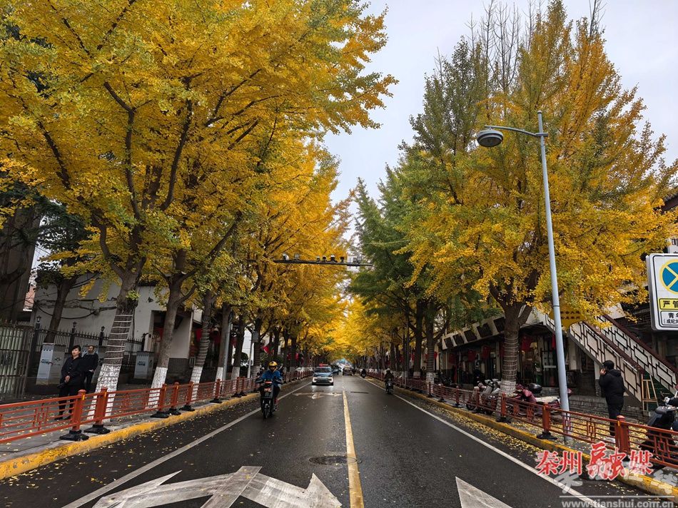 “又是一年银杏黄,今年比往年更期待,因为今年我刚好在这开店,每一年布置得都很有诗意,走在这条街上,每天在这个环境中工作上班真的很开心。”秦州区青年北路店铺老板胡玉梅说。
