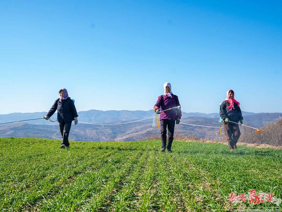 “现在田间管理的话,十多天来一天打一块地的除草剂还有水溶肥、杀虫剂等一喷三防的药,这一年按农业局的指导收成也比较好,预计油菜明年6月20号左右就成熟了,看今年冬天这个长势挺好,产量估计到三四百斤,小麦的产量明年有望达到每亩一千斤左右。”秦州区丰登种养殖农民专业合作社负责人赵兵全说。