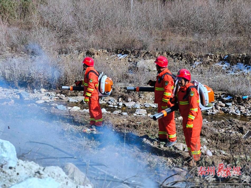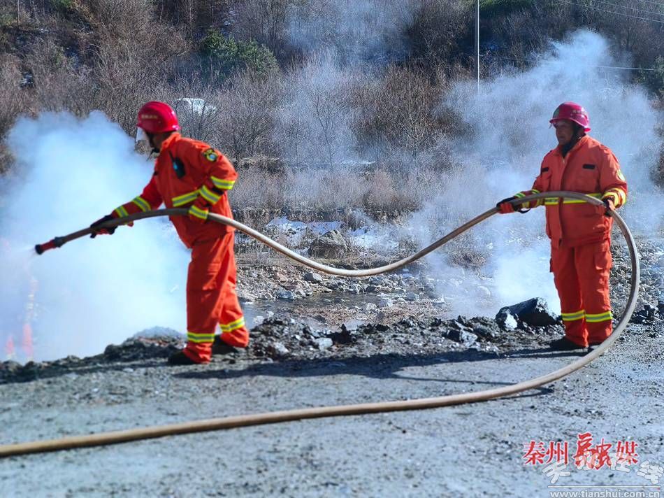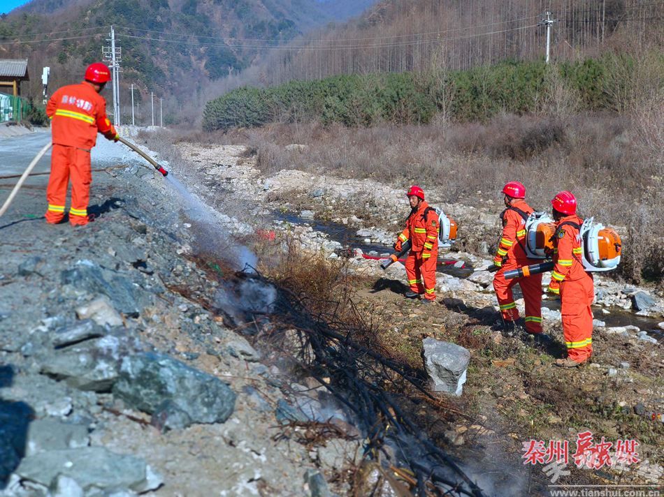 “我们一共6人,采取风力灭火和地泵增压抽水进行灭火,目的为了提升我们的实战消防技能,如果以后有类似的事情发生后,我们也能够从容应对。”甘肃秦州珍稀水生野生动物国家级自然保护区管护中心北峪河管护员王旺才说。