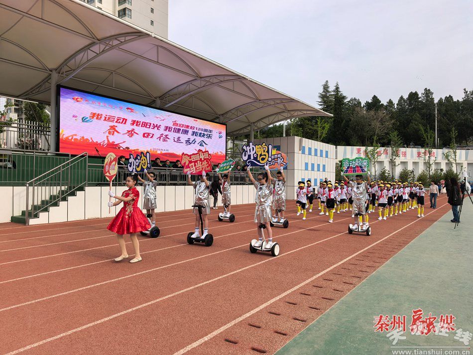 秦州区融媒体中心4月23日讯(记者 张敏)为喜迎建校120周年,践行“五育并举”教育理念,4月22日,天水市实验小学举办以“我运动 我阳光 我健康 我快乐”为主题的春季田径运动会,全体师生齐聚赛场,以拼搏之姿致敬百年校史,以奋进之态书写少年华章。