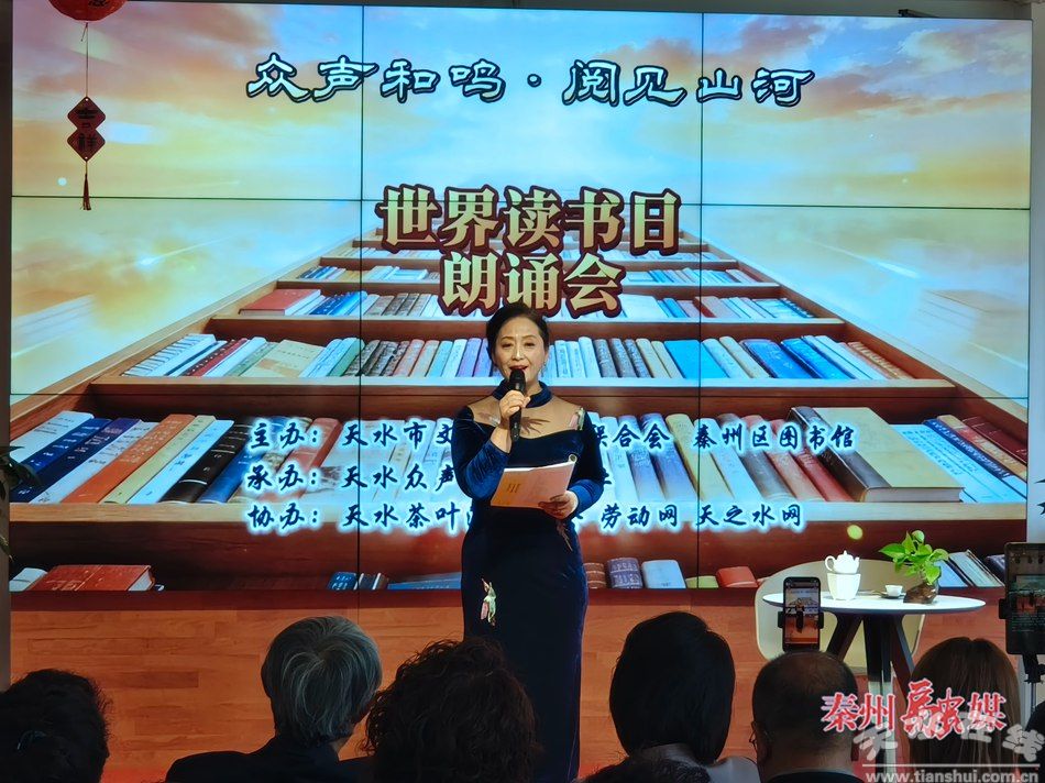 秦州区融媒体中心4月23日讯(记者 康睿)4月23日是第31个世界读书日,为进一步推动全民阅读,4月22日,秦州区图书馆举办了以“众生和鸣 阅见山河”为主题的朗读会。馆内书香弥漫,二十个精心准备的节目次第登台,用声音串联起文字的温度,让阅读的力量在春日里悄然生长。