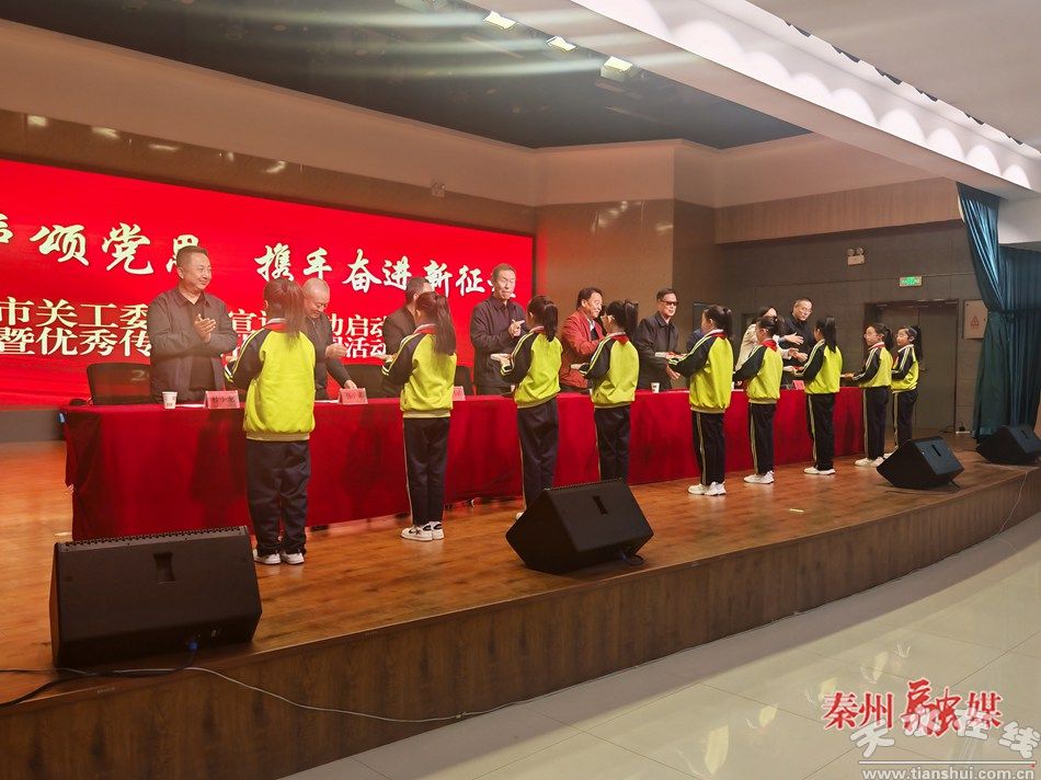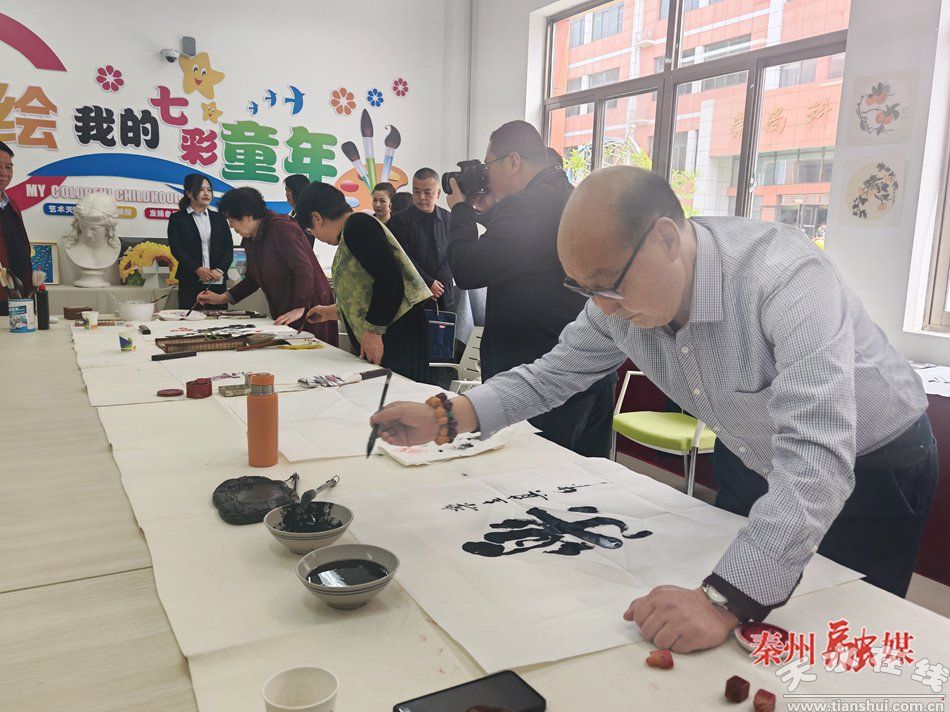 秦州区融媒体中心4月24日讯(记者 杨文慧)4月23日,全市关工系统“老少同声颂党恩 携手奋进新征程”宣讲启动仪式暨优秀传统文化进校园活动在天水市玉成小学举行。市人大常委会原副主任、市关工委常务副主任王子生,市教委原主任、市关工委学校工作委员会主任杨兴胜,市委党校原常务副校长、市关工委青少年报告团团长、省关工委宣讲团成员李新一,市委老干部局副局长、市关工办主任刘鸿斌,区人大常委会原主任、区关工委常务副主任魏胜奎,区委常委、宣传部部长王萍,区政协原副主席、区关工委副主任张甲成,区教育局、区关工委相关负责人以及6名退休书画家和天水市玉成小学部分师生代表,共计200余人参加活动。
