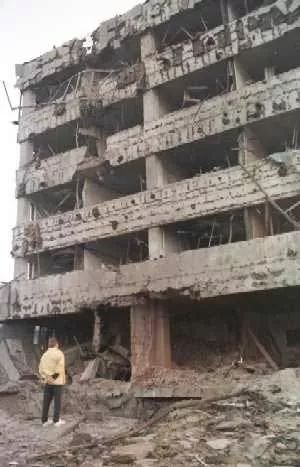 被炸后的我驻南使馆外景。(吕岩松 摄)