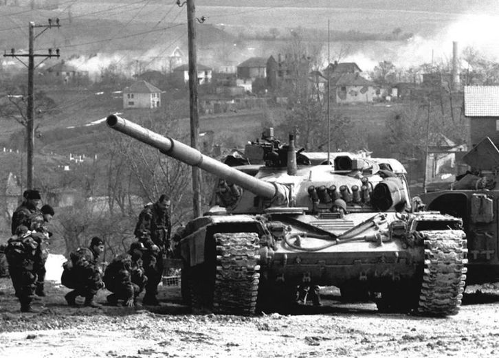 这是1999年3月24日,南联盟军队的一辆坦克在科索沃省德雷尼察地区待命,随时准备战斗。新华社发