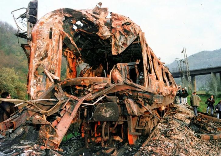 1999年3月24日,以美国为首的北约向南斯拉夫联盟开始发动大规模空袭,武力干涉科索沃危机。资料照片显示被北约飞机炸毁的火车。新华社发