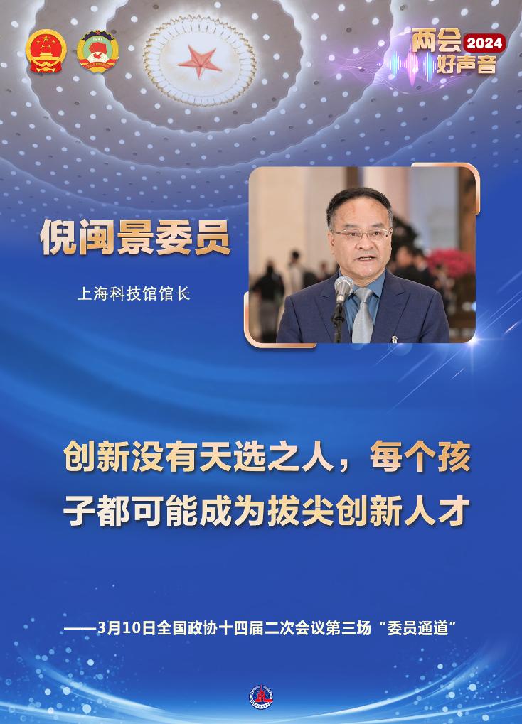 在上海科技馆馆长倪闽景委员看来,自主性强、专注力高、特别有韧性是创新人才具备的共同特质。“创新没有天选之人,每个孩子都可能成为拔尖创新人才。”倪闽景说。