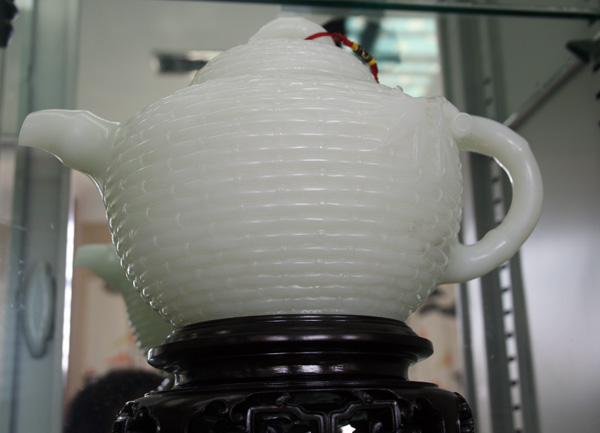 羊脂玉壶,价值280万元。在和田,上百万的玉器比比皆是。