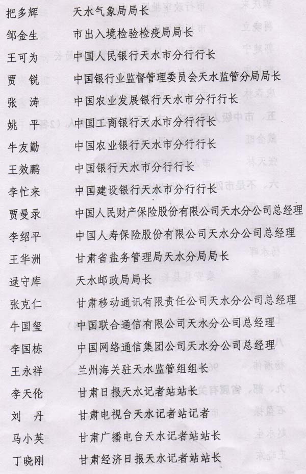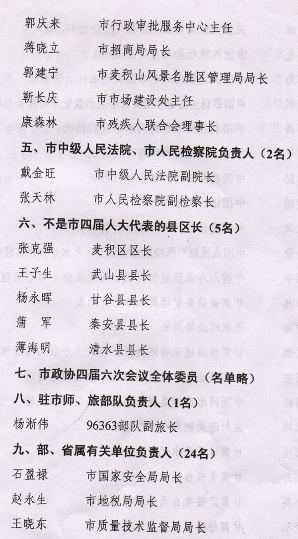 天水市第四届人民代表大会第七次会议列席人员名单 |