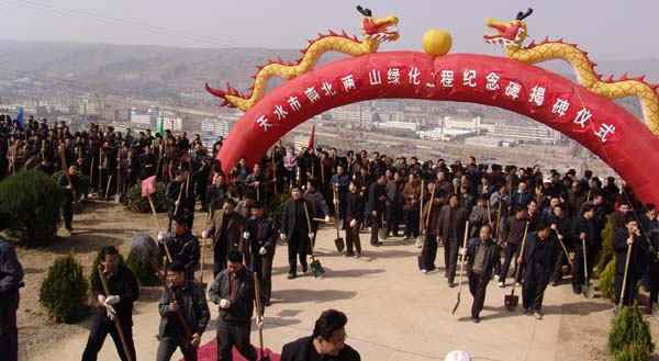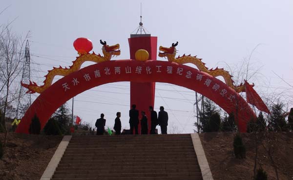 3月15日下午,市四大组织领导、市直机关干部职工、秦州麦积两区四大组织主要领导等1000多人,参加了天水市南北两山绿化纪念碑揭碑仪式和秦州区豹子沟春季义务植树活动。