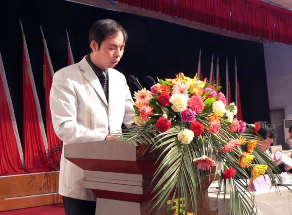 董小明同志宣读《天水青年书画家协会章程(草案)》