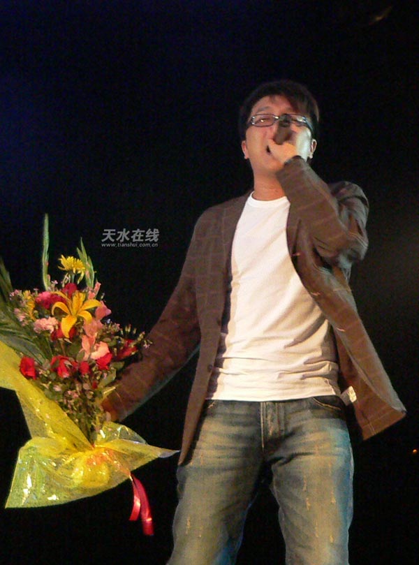 昨晚8时整,在一片欢呼声中,台湾歌手黄安出现在舞台上,他的出现立刻受到了天水歌迷的热烈欢迎,他保持了一贯的幽默和风趣。在主持节目的同时还不忘说:“这次来天水,我觉得这里山美水美,人更美,我喜欢天水的山山水水,更喜欢天水的美女们!”引得全场观众大笑不止。
