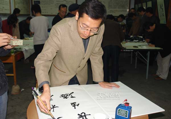 ¡¤ÀîÌìÂ×ÔÚ¡°ÌìË®Êé»­Ãû¼Ò´¥Íø±Ê»á¡±ÉϵÄÖ´Ç