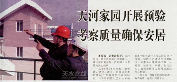 本报讯【记者蔚军平】天河家园一期工程目前已全面竣工,其住宅质量是每一位即将入住者最为关心的事。