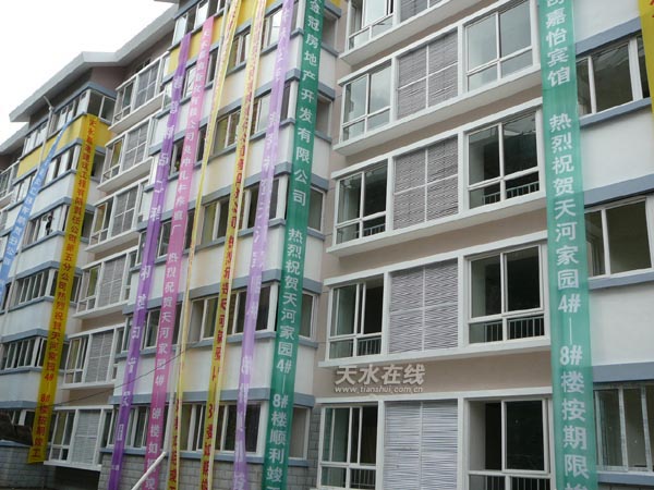 9月1日,天河家园内锣鼓喧天、彩旗飘扬,天河家园一期工程比合同工期提前两个月竣工。活动当天,秦州区副区长赵耀雄宣读了秦州区委、区政府的贺电,市城投公司对施工单位天水嘉通、天水永生建筑公司分别给予了奖励,藉河生态环境综合治理工程部分拆迁户现场参观了竣工房屋。