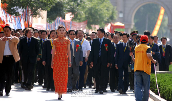 本报天水6月22日电(记者李天伦李满福)6月22日,农历夏至。天水市伏羲广场人流如潮,龙旗猎猎,鼓乐齐鸣。由省政府主办,天水市政府、省文化厅承办的2007(丁亥)年公祭中华人文始祖伏羲大典隆重举行。来自全球各地的华人以及省内外各界群众,在这里共同朝觐祖先,共襄民族发展。