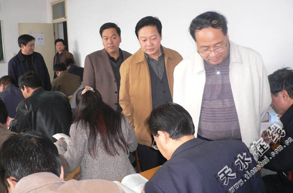 10月20日下午,全市县级干部法律知识考试在市委党校进行。天水市委常委、政法委书记韩岱成,市人大常委会副主任朱政英,副市长杨维俊带领市司法局、市委党校、市依法治市办公室的负责同志到考点进行了巡视,市领导就组织好这次考试特别是后面的阅卷、登分等工作提出了具体要求。