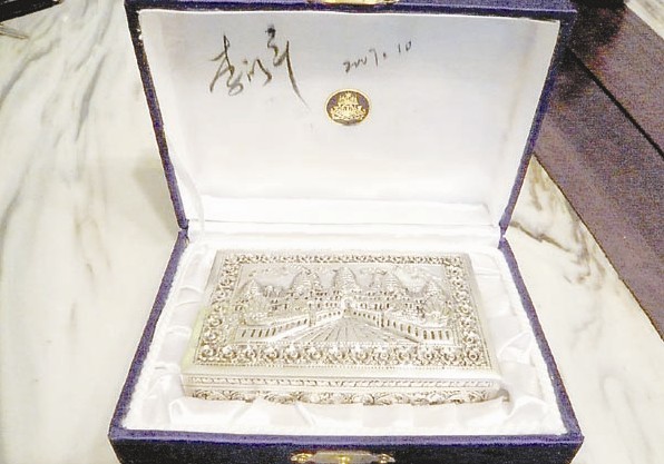 新闻联播主持人李修平捐赠的柬埔寨国王礼物银首饰盒由建新公司4万元中标。