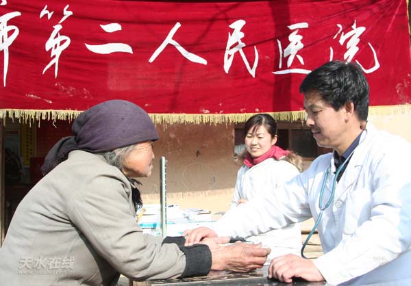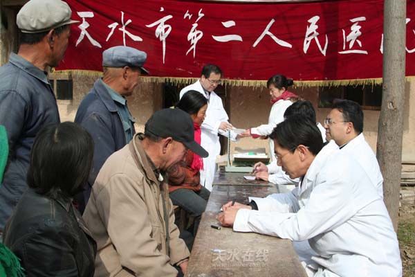 近年来,天水市第二人民医院注重扶贫开发工作,每年组织临床医务人员深入辖区乡镇开展义诊活动,为广大农村患者提供便利的就医条件,今年以来,先后组织医疗队先后深入张家川县龙山镇、恭门乡、刘堡乡、麦积区甘泉镇、元龙镇、五龙乡等县区、乡镇开展义诊咨询,接待群众咨询6500余人次,免费赠送价值6000余元的药品,接诊患者3650余人次;按照年初制定的帮扶计划,医院给结对帮扶的五龙乡凌温村送医送药到田间地头,并为该村免费培训乡村医生2名;村民凭村委会介绍信到我院就诊,挂号费、床位费全免,并减免30%的检查费。医院被评为“全国文化科技卫生三下乡先进集体”。(张景文)