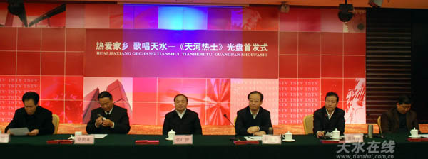 12月20日,由天水市委宣传部、市文化文物出版局、市广播电视台、天水日报社联合主办,以“热爱家乡、歌唱天水”为主题的《天河热土》光盘首发仪式在天水宾馆举行。
