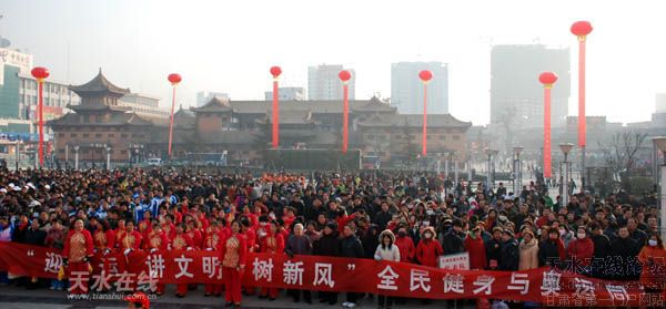天水在线讯 2008年1月1日,天水市《精神卫生杯》“迎奥运”、“庆元旦”激情08现在出发全民健身系列活动启动仪式在龙城广场举行。