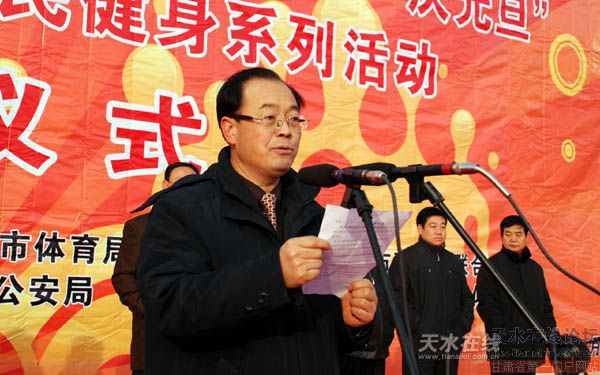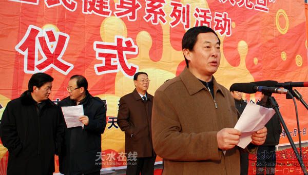 市体育局党组书记、局长、市体育总会主席于国祥宣读全市第二批全民健身站名单