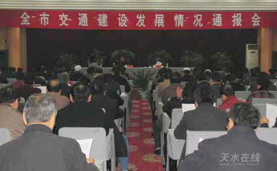 会上,市委常委、副市长张国华就2007年全市交通建设进展情况进行了通报。他说,2007年,全市在建公路交通项目1025个,总工作量达到37.6亿元,项目数量、投资规模均创历史之最,截至11月底,共完成年度投资28.8亿元,占年度投资的76.6%;天水军民合用机场改扩建项目已完成土地征用、场地“三通一平”项目的设计、工程初步设计、配套建设项目的审批、初步设计的审批等工作,并于10月27日实现了包机首航,12月7日举行了工程奠基仪式,目前工程建设进展顺利,力争明年6月底完成机场通航所需的建设项目;天水至平凉铁路线路全长约130公里,预计总投资39.13亿元,项目前期工作基本就绪,力争2008年开工建设。张国华并就这三项交通建设项目2008年工作打算作了通报。