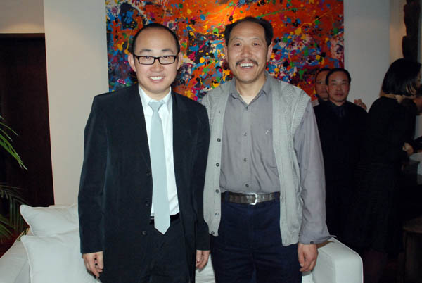 武山县教体局教研室副主任赵宝膺(右)和潘石屹合影留念