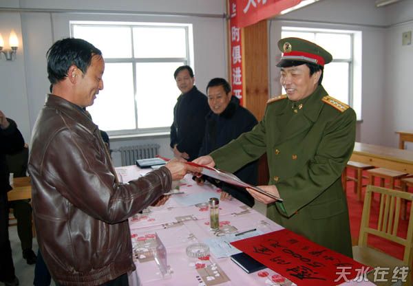 (天水日报 张树平)1月29日,天水市委常委、天水军分区司令员刘道成带领市交通局、市扶贫办、天塑公司有关人员到扶贫联系点清水县白驼镇杨坪村、罗袁村进行帮扶活动。给两村各捐赠现金5000元,并为10户贫困户发放慰问金3000多元,为党建联系点永清镇北城社区捐赠现金2000元及一批学习资料。