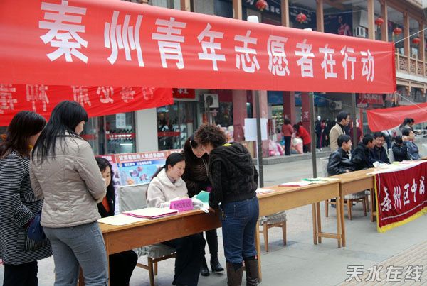 天水在线讯 3月5日,天水市开展了以“迎奥运、讲文明、树新风、青年志愿者在行动”为主题的志愿者服务活动。
