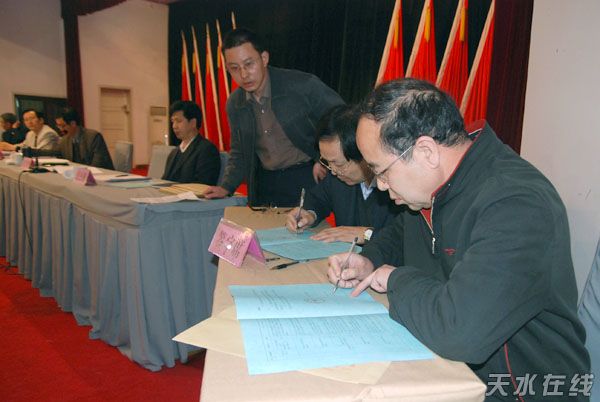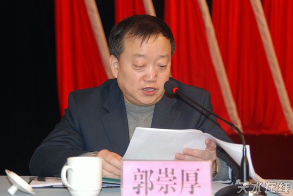 (市政府副秘书长谈启明宣布2008年天水市“10强50户”企业名单)