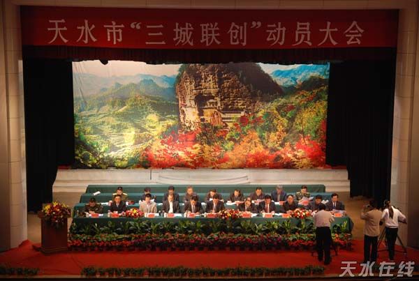 市委、市政府决定在全市深入开展“三城联创”活动,力争通过3~5年左右时间,把天水创建成为国家园林城市、国家卫生城市和中国最佳历史文化旅游城市。这是市委、市政府为提升城市品位,改善投资环境,加快建设富裕文明和谐新天水的重要举措,意义重大,影响深远。刚才,国华同志对“三城联创”工作进行了安排部署,我完全赞成,希望大家认真抓好落实。