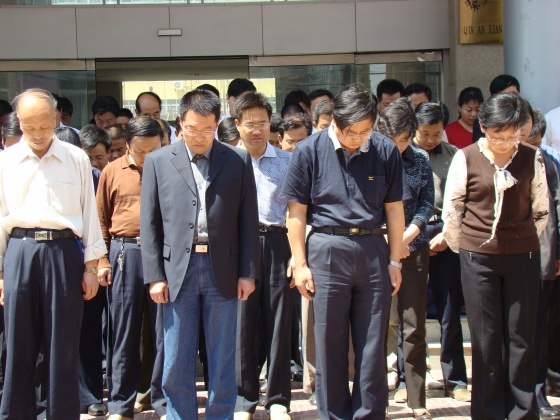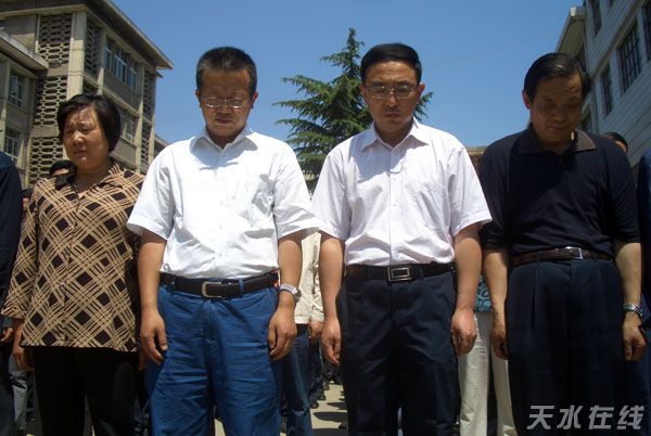 5月19日14时28分,清水县四大组织领导及机关工作人员、普通市民、学生等社会各界哀悼汶川大地震遇难者。