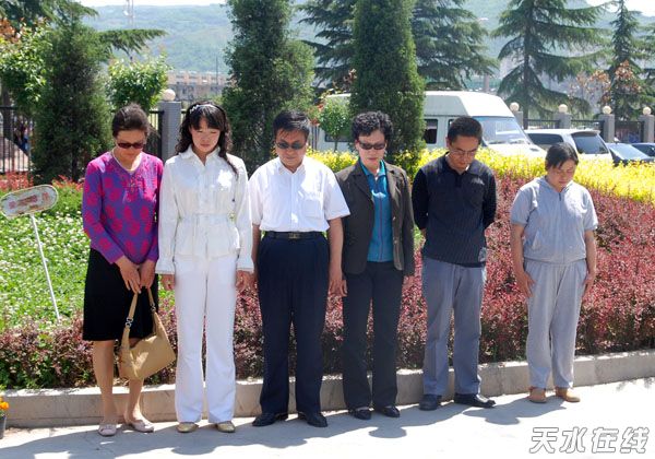 5月19日14时28分,天水伏羲文化节办公室、天水在线、天水民俗文化研究会等单位沉痛哀悼汶川大地震遇难者。