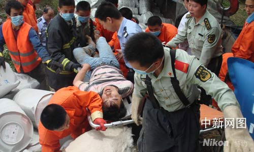 由于车体前身撞进“U”型的沟内,地形复杂,为保证参战人员和周围群众的安全,在7名消防官兵的监护下,消防官兵历经4个小时奋战后,把23吨400多桶固体氰化钠安全转移,排除了险情,中断了近5个小时的310国道恢复了通车。