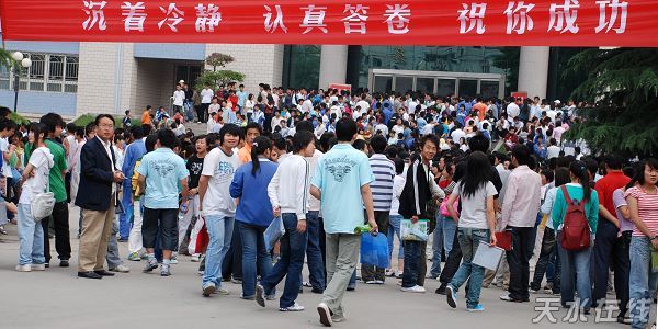 5月12日汶川大地震,天水市受到波及,当地学校受损也较为严重。在最近一段时间,这里仍不断受到余震的干扰,大街上搭满了避震帐篷,但这里的高考没有延迟,仍如期举行。
