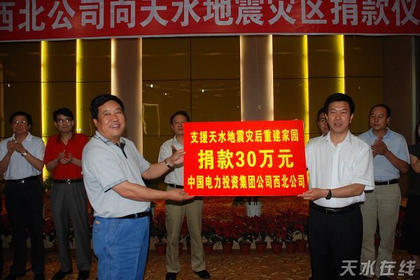 ¡¡¡¡7ÔÂ10ÈÕÉÏÎ磬ÖйúµçÁ¦Í¶×ʼ¯ÍŹ«Ë¾Î÷±±¹«Ë¾ÎªÎÒÊоè¿î30ÍòÔª£¬Ö§Ô®ÎÒÊÐÔÖºó»Ö¸´Öؽ¨¹¤×÷¡£ÊÐί³£Î¯¡¢ÃØÊ鳤ÕÅ»³ÈÊ£¬¸±Êг¤Ñîά¿¡³öϯÁ˾è¿îÒÇʽ¡£