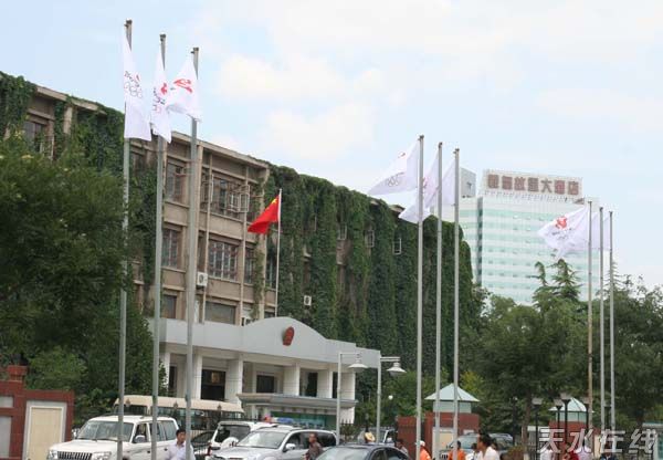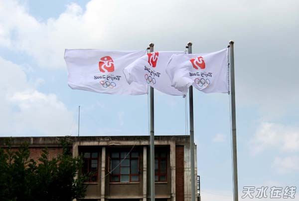 8月7日,甘肃天水市秦州区民主西路(天水市政府门口),奥运旗迎风飘扬。