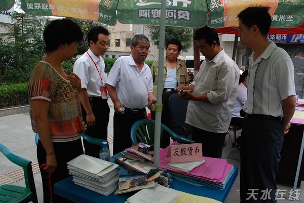 ▲8月20日,秦州、麦积两区各银行业金融机构营业网点在市区主街道设立宣传点进行金融知识、银行业务宣传。
