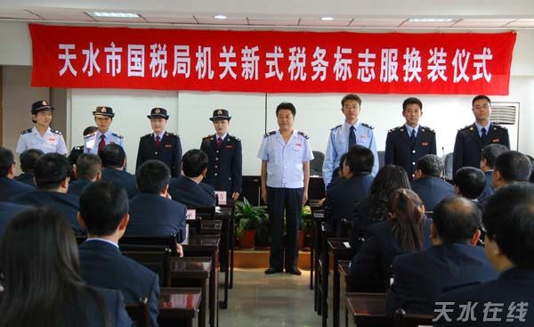 10月6日,天水市国税机关税务标志服换装仪式在市局机关11楼举行。市局领导及市局机关全体干部共70多人身着崭新的税务制服参加了换装仪式。