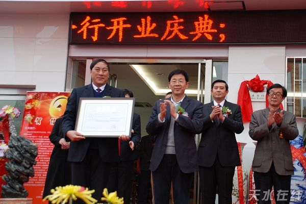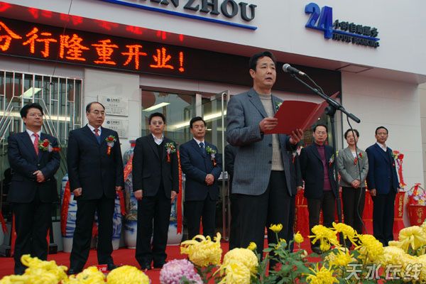 天水银监分局贾锐局长宣读兰州银行天水分行开业批复